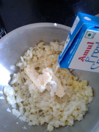 Aditi & I have forever been crazy fans of mashed potatoes. I hadn’t cooked anything on the flame other than maggi before (don’t go by the order of posts here) and a (part-successful) attempt at roti prata (aka roti canai). Aditi was out for work on a weekend and I thought of trying this out as it needs very few ingredients. Most indian households will have all of this. Check: oven, baking dish and cream.